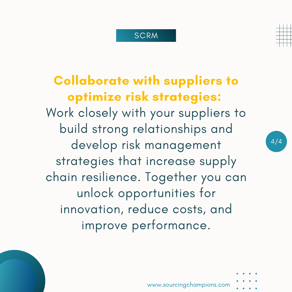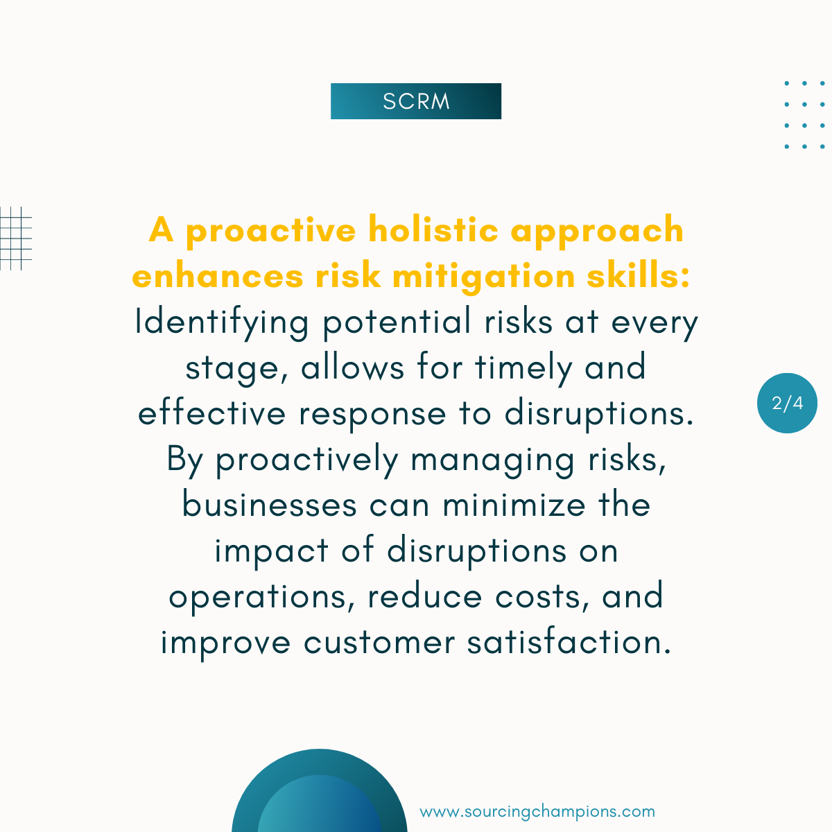 - Implementing holistic SCRM, with respects to people, processes & technology.